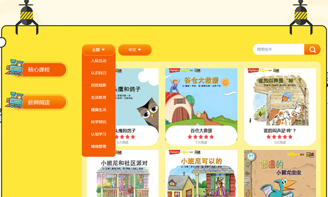 孩子可以根据自己的兴趣爱好选择主题及中英文进行阅读,更多的乐趣还等您去发现哦……